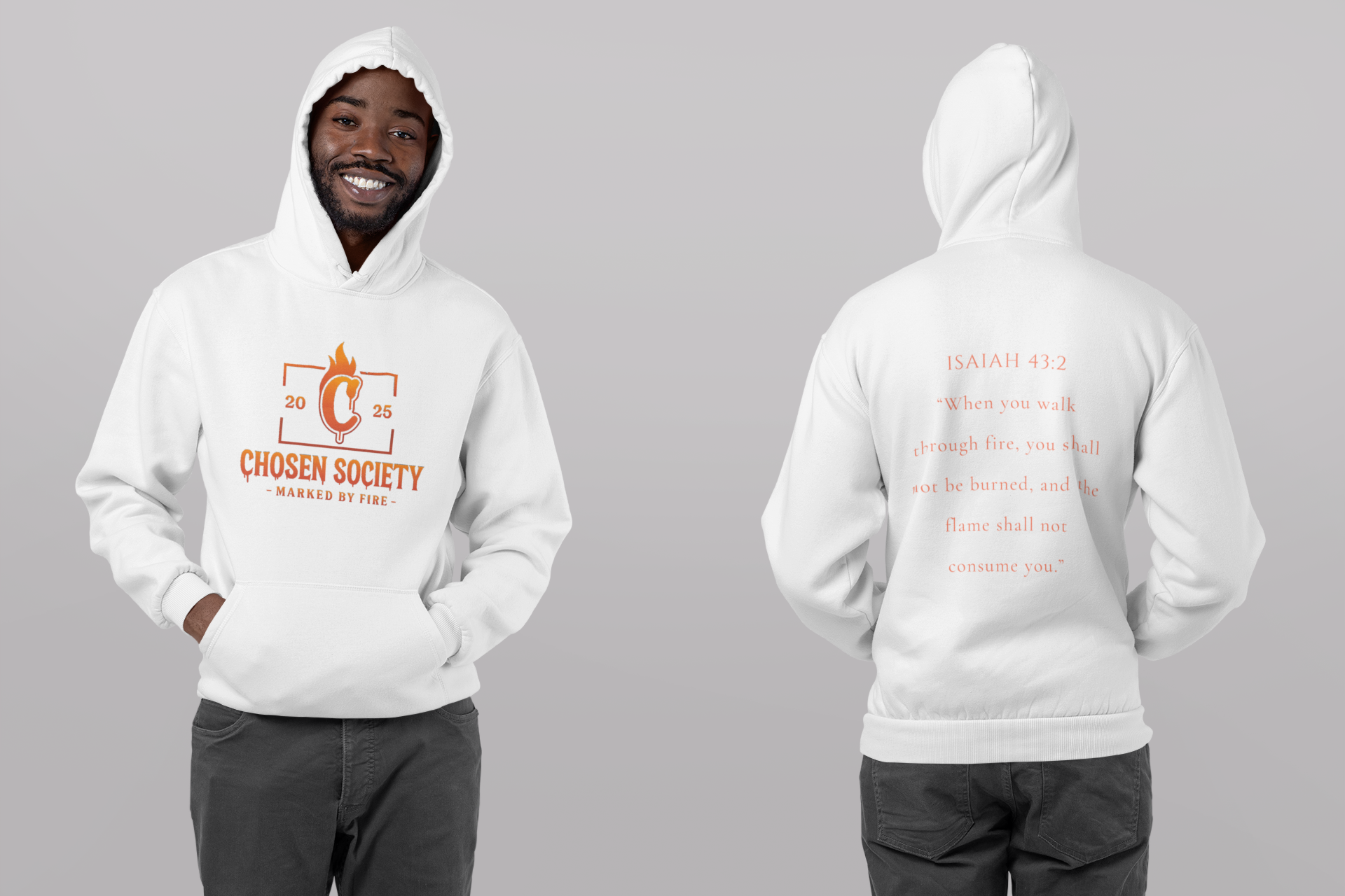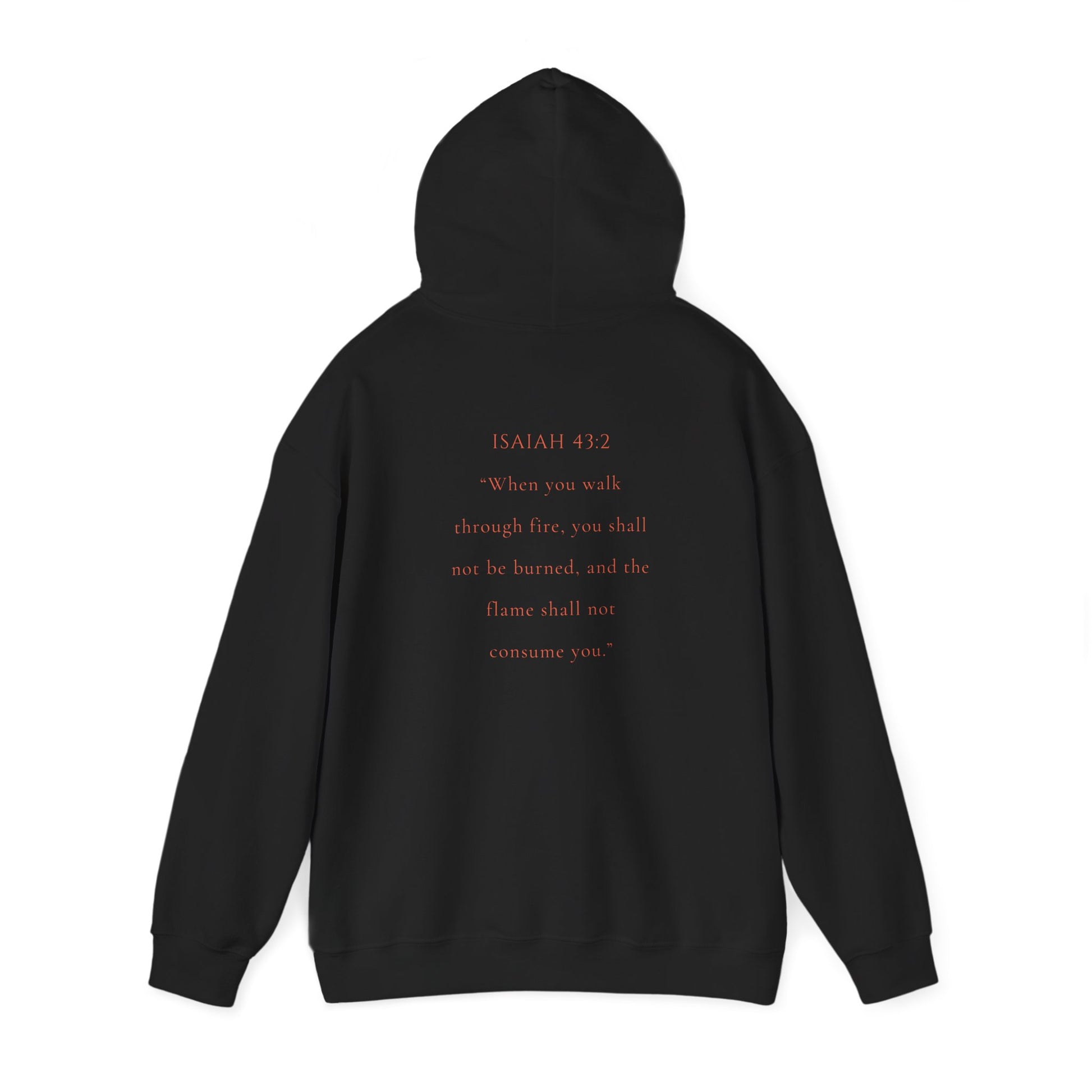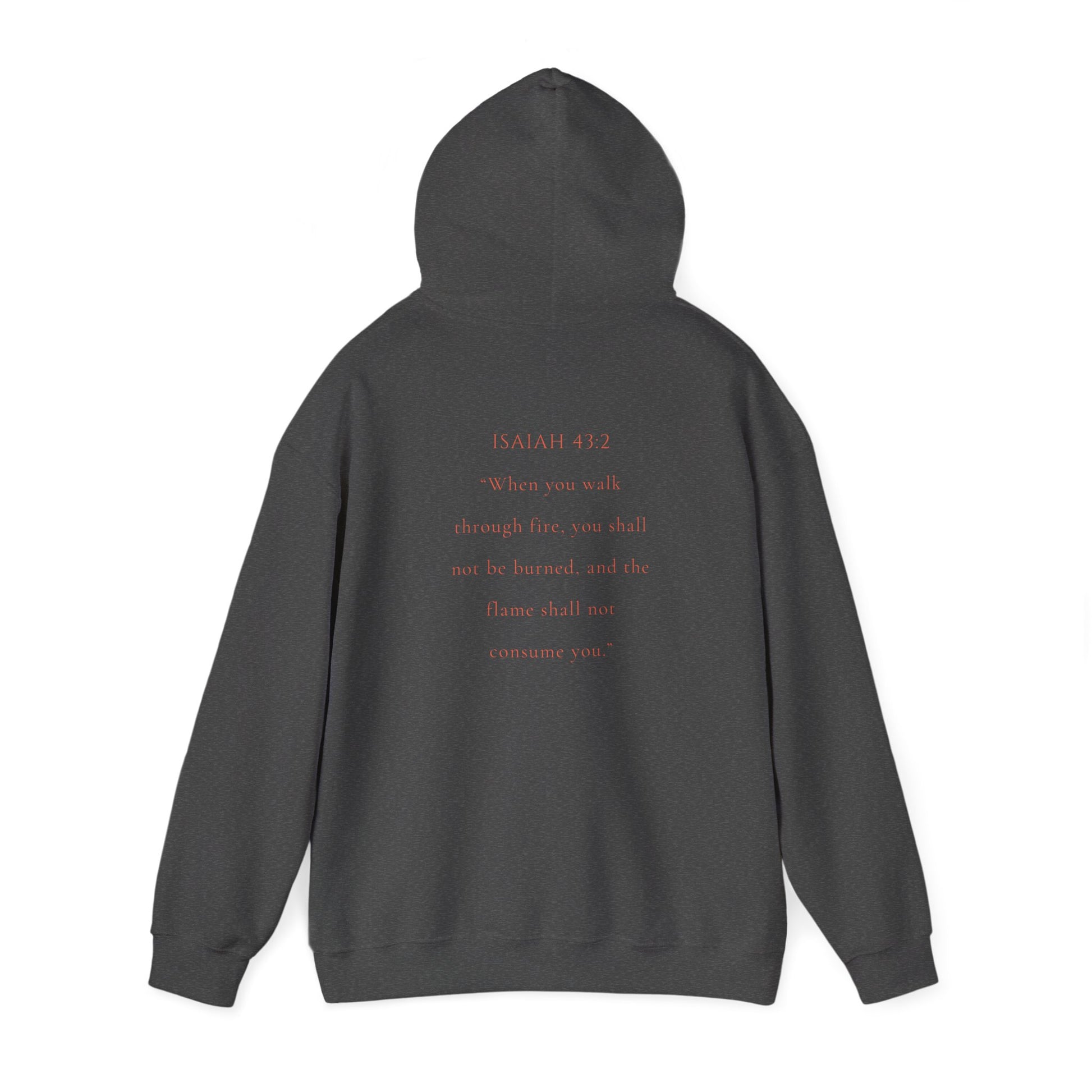 This Marked by Fire Isaiah 43:2 hooded sweater is designed to be bold and start conversations. It provides a cozy feel and warmth, making it perfect for chilly days. Ideal for adults looking for a stylish and comfortable hoodie to wear during casual outings, gatherings, or outdoor activities. Relevant for Christian holidays, church events, and spiritual gatherings.