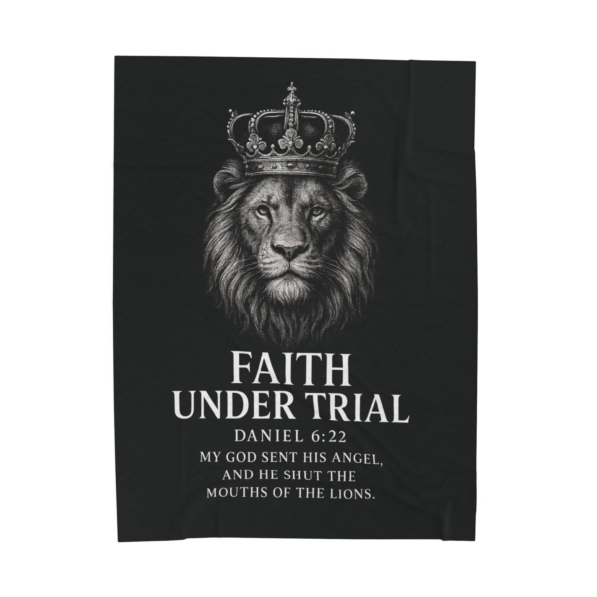 Wrap yourself in strength and scripture with the Faith Under Trial Blanket, inspired by Daniel 6:22.